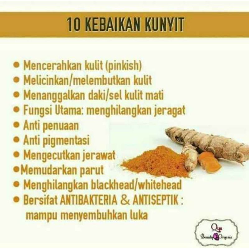 Gunakan pemutih wajah yang aman satu ini seminggu sekali untuk hasil optimal. Kunyit juga membantu melindungi dan menjaga kesehatan organ hati. Memang peyembuhan relatif lambat tetapi kemampuan kunyit.